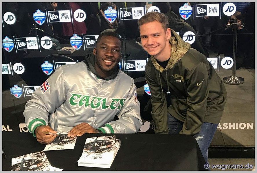 Nelson Agholor kam! Glücklicherweise stand Moritz recht weit vorn, so dass nur ca 15 Leute vor ihm waren und es nun nicht mehr lange dauerte!