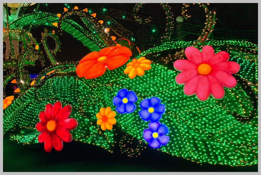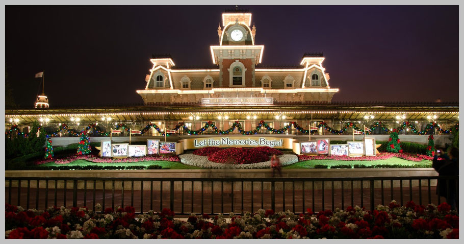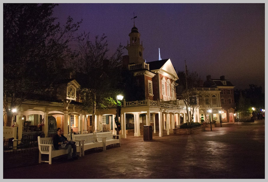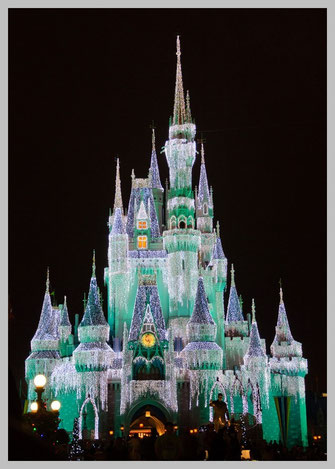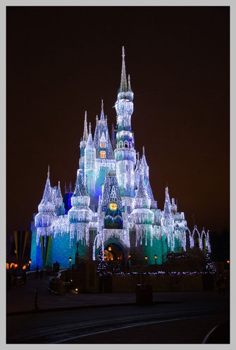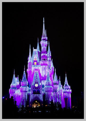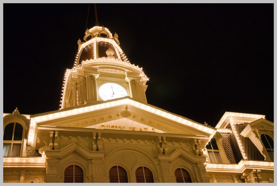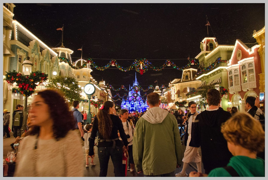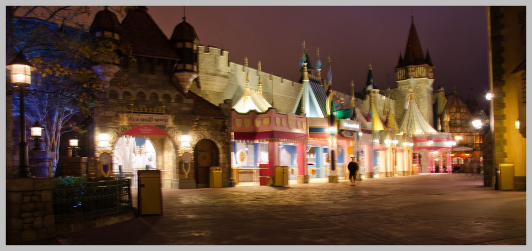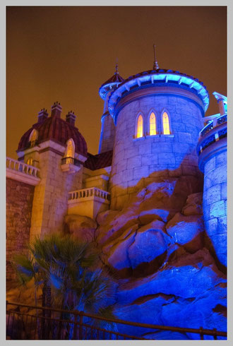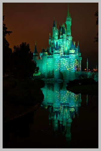 Wieder vorn in der Main Street angekommen wechselte das Schloss gerade dauernd seine Farben. So toll!
