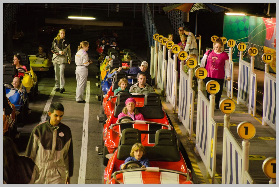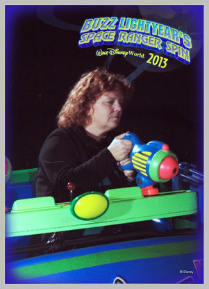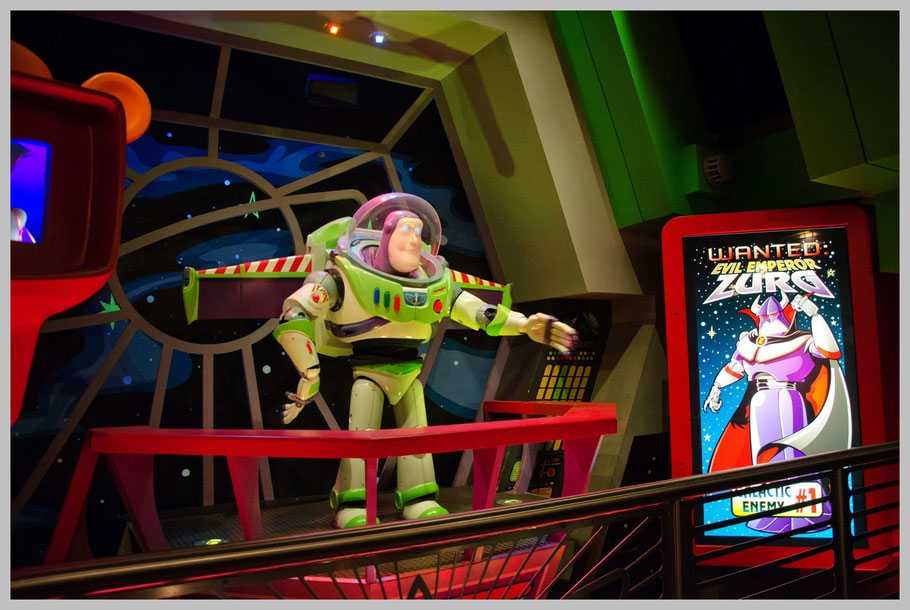 Wir machten uns zu unserer ersten Fast Pass Fahrt des heutigen Abends auf: Buzz Lightyear! Wohl durch den Absturz des Systems, der immer noch konstant anhielt, leuchtete bei jedem Zweiten beim