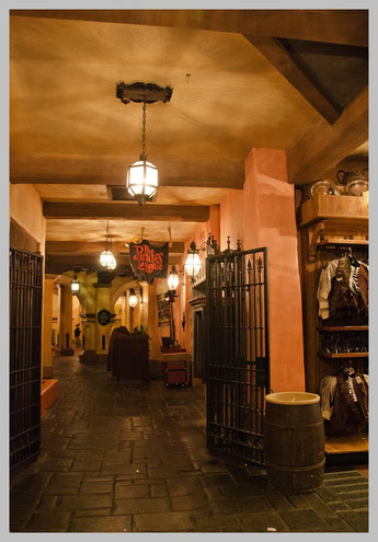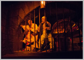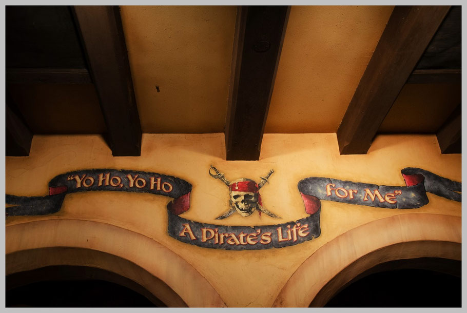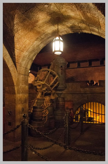 Als nächstes lagen die Piraten auf dem Weg und Jack Sparrow wollte Moritz unbedingt "Hallo" sagen! Mit 15 Minuten Wartezeit ging es auch schnell vorwärts. Bevor wir hineingingen musste Moritz allerdings noch in einem Fenster wieder einen Bösewicht besiegen!