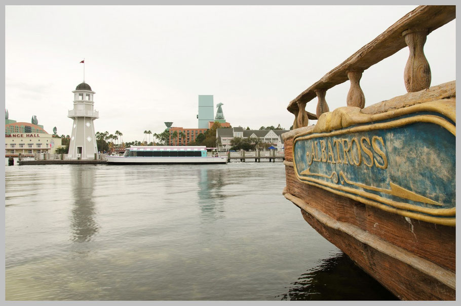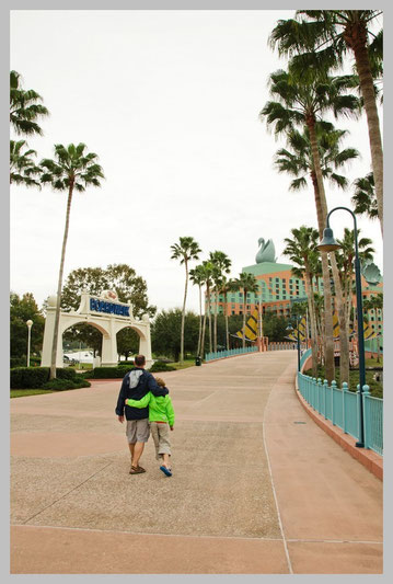 nehmen und dort dann in einen Bus zum Swan umzusteigen. Als erstes kam der Bus zum Magic Kingdom, rein mit uns, und am MK umgestiegen. Dieser Bus fuhr nun das Boardwalk Resort, Swan und Dolphin