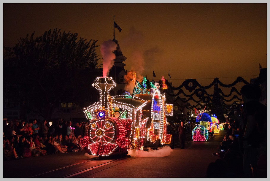 Wir fanden am Straßenrand noch ein Plätzchen und warteten auf die Main Street Electrical Parade. Ich freute mich riesig, die Parade mal wieder live zu sehen (sie lief vor Jahren auch in Paris) und vor allem dieses Lied zu hören. Yeah!