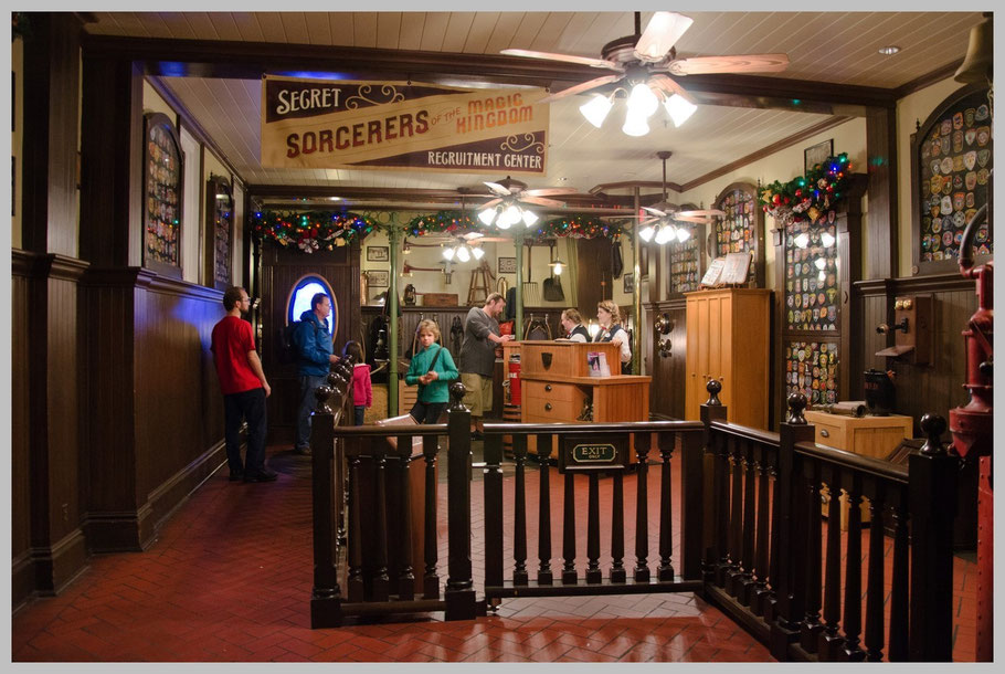 Im Park angekommen waren die Auswirkungen des App-Absturzes gleich sichtbar. Ziemliches Chaos! In der City Hall standen so viele Leute an... Die meisten wollten ihre Fastpasszeiten wissen. Die Schlange aus der City Hall ging bis zum mittigen Eingang unter der Railroad und dort noch durch den Bogen durch! Auch ansonsten war der Park noch gut gefüllt. Erster Halt für uns war die Feuerwache, wo Moritz sich ein neues Päckchen Karten für das Sorcerer Spiel holte.