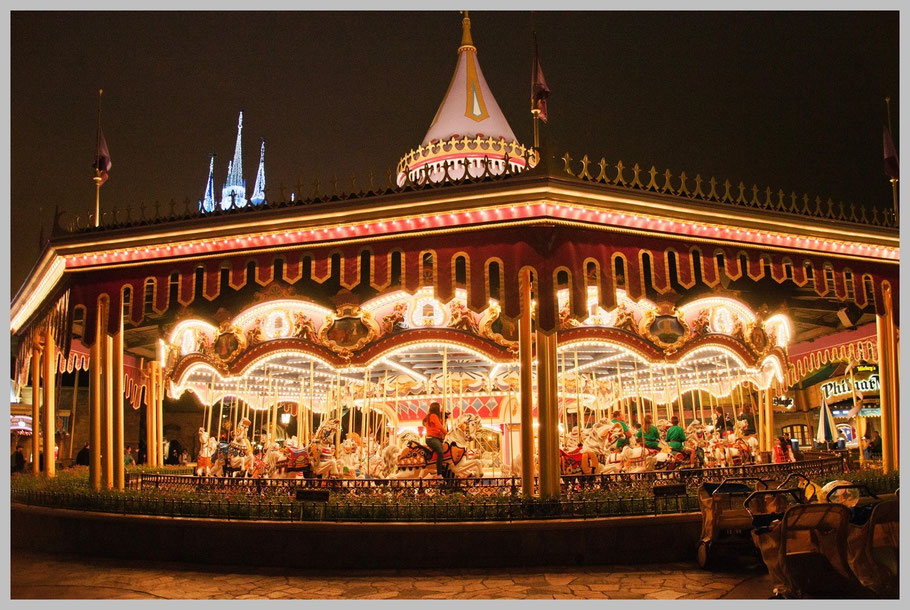 Am frühen Abend fuhren wir mit dem Bus ins Magic Kingdom. Da gab es in der Nacht von 01.00 Uhr- 03.00 Uhr die Extra Magic Hours (Stunden, wo nur die Gäste der Disney Hotels mit den Attraktionen fahren dürfen), die wir ausnutzen wollten. Ausgeschlafen hatten wir am Morgen und Moritz konnte schon immer ein Nachtschwärmer sein, somit stand unserem Spaß nichts im Weg.