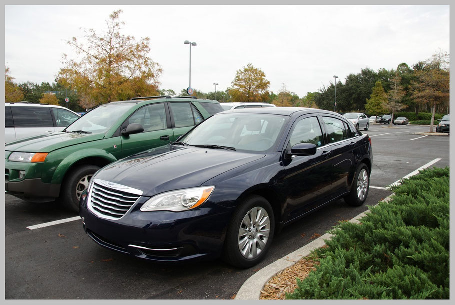 Am Tresen von Alamo standen wir etwas länger... Ich hatte uns "nur" einen Economy Wagen gebucht. Wir würden nur gepäcklos unterwegs sein, reichte also vollkommen aus. Tja, aber sie hatten keinen Economy vorort. Wer bucht auch schon so ein kleines Auto hier? :-D Die Dame hatte nur Fullsize SUV´s zur Hand. Bäda grinste bereits übers ganze Gesicht. ;-) Kurzer Anruf der Dame bei ihrem Chef: nein, einen Fullsize kann sie uns nicht geben. Es wurde dann ca eine halbe Stunde beraten, bis ein Chrysler kam. Den gaben sie uns dann, weil sie keine Möglichkeit fanden, einen kleinen Wagen herzubringen. Wir liefen vors Hotel und waren gespannt, welches Gefährt uns erwartete. Und wir waren mehr als zufrieden! Das Auto war noch fast neu, Moritz war begeistert von dem neuen Duft, der noch im Wagen in der Luft lag. Und das Auto war wirklich fast neu, es waren gerade mal 200 Meilen abgefahren. Schön geräumig war er auch, also was wollten wir mehr? Und das war er: