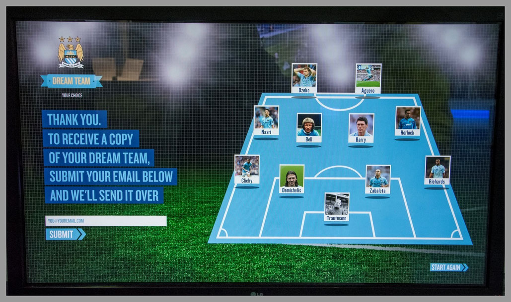 An einer Videowand konnte man sich seine eigene Man-City Mannschaft zusammenstellen. Musste Moritz natürlich machen.