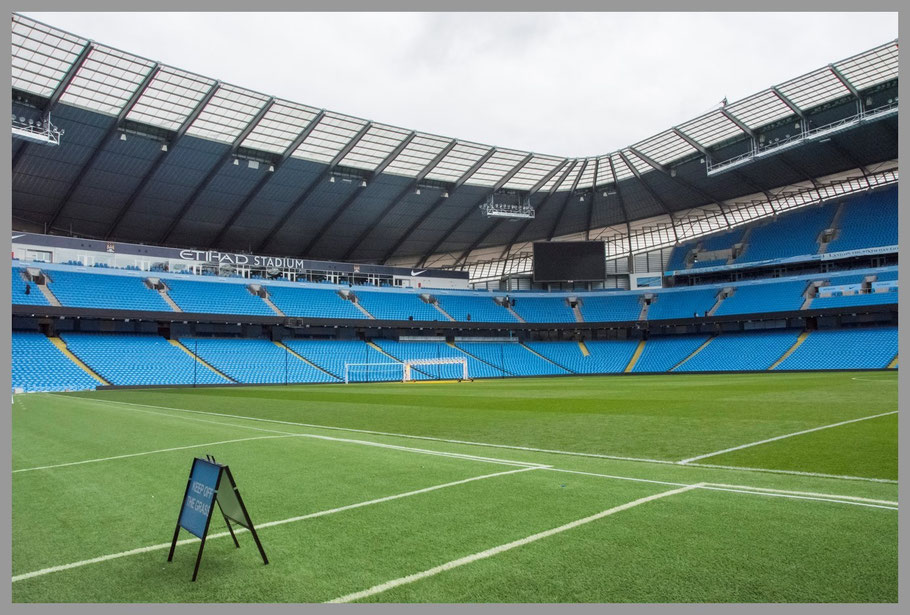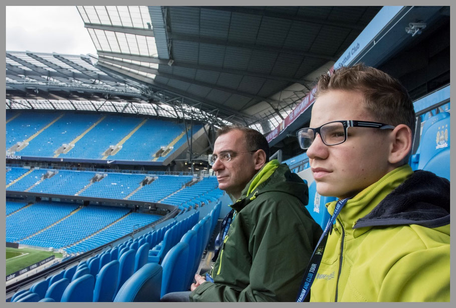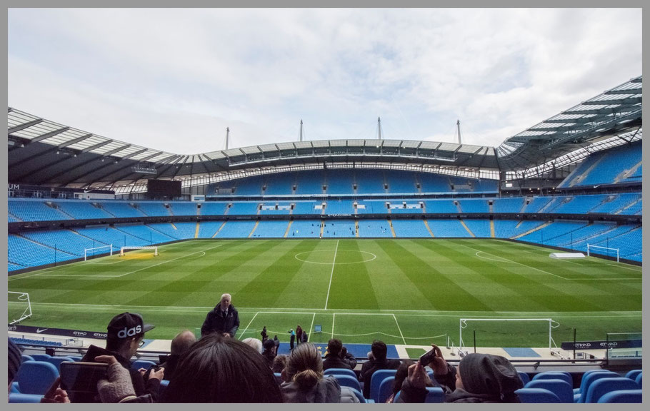 Fußball, die Zweite. Nachdem wir uns gestern das Stadion der „Roten“ von ManU angeschaut hatten, gönnten wir uns heute den direkten Vergleich mit den „Blauen“ von Manchester City. Den ersten Pluspunkt hatten die schon, weil der Besichtigungstermin eine Stunde später angesetzt war als am Vortag und so konnten wir länger schlafen. ;-)