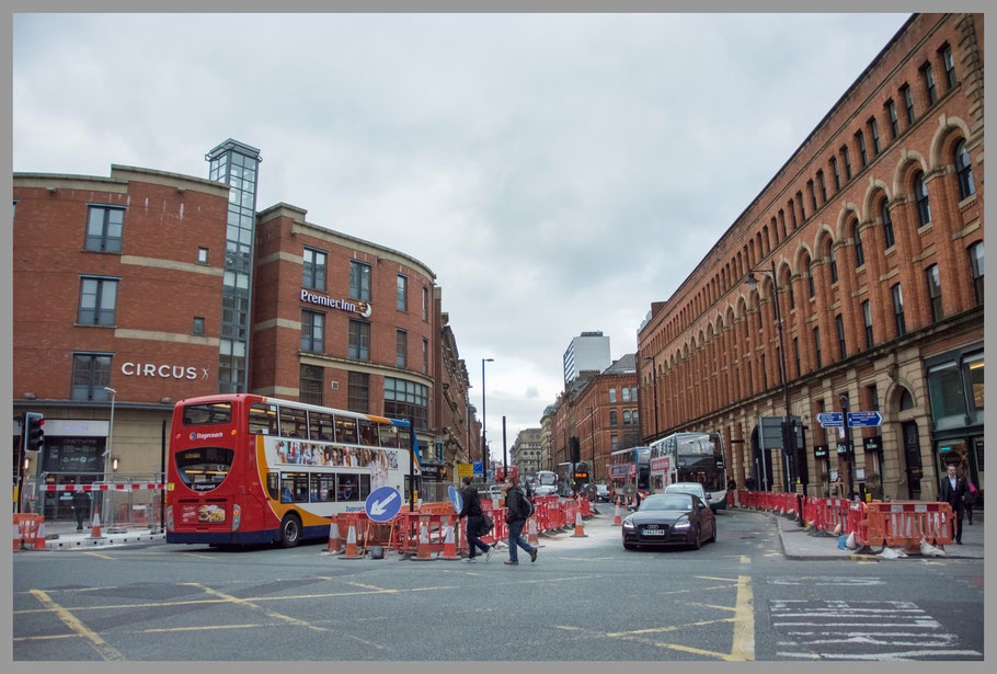 Überhaupt ist Manchester als Stadt jetzt nicht der totale Hingucker. Es gibt zwar immer wieder wunderbare Altbauten, aber dazwischen wurde völlig hirnlos daneben und teilweise sogar drüber gebaut. Und es wird immer noch gebaut. Die ganze Stadt war quasi eine einzige Baustelle.
