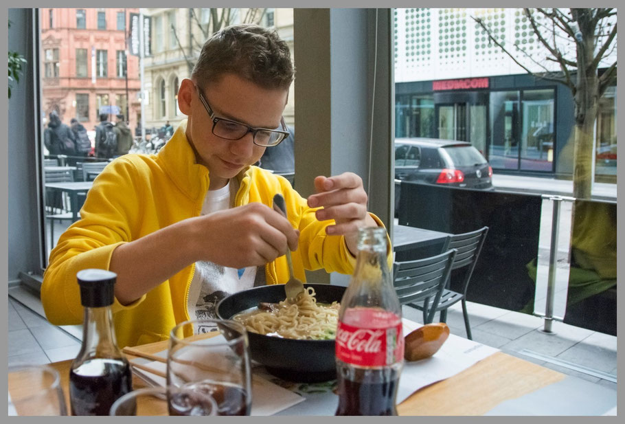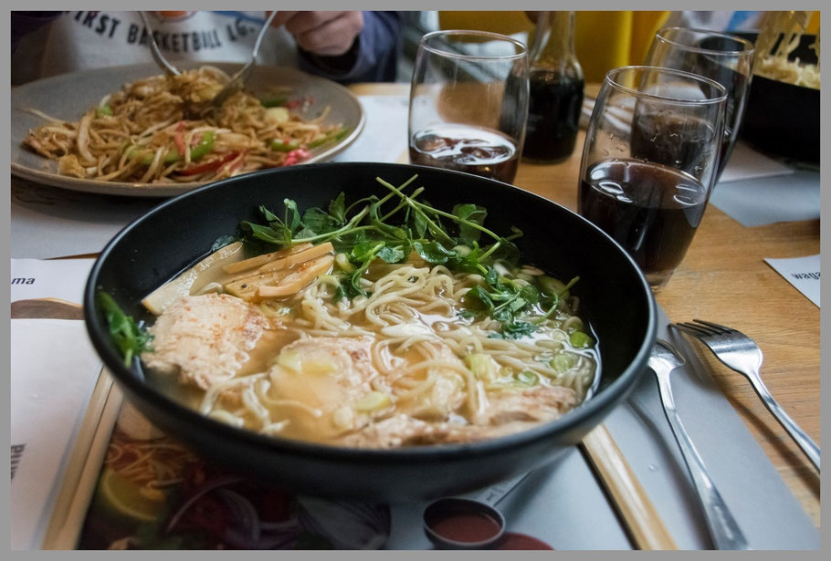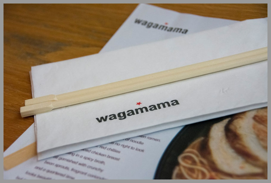 Danach plagte uns der Hunger und wir wollten schauen, was es so gibt. Gleich um die Ecke war ein „Wagamama“-Restaurant.