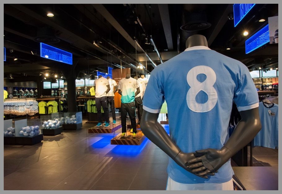 Der Treffpunkt für die Besichtigung war der Fanshop und der hatte den Namen diesmal auch verdient. Für uns war das sowieso angenehmer, du gehst rein und alles ist weiß-blau und nicht so augenkrebsrot wie bei ManU ;-P