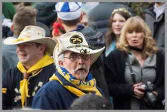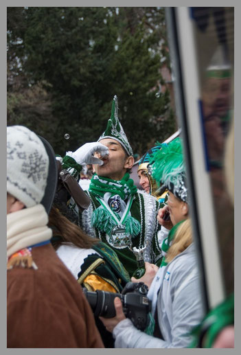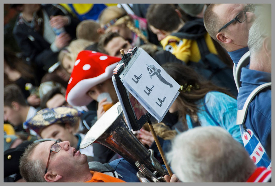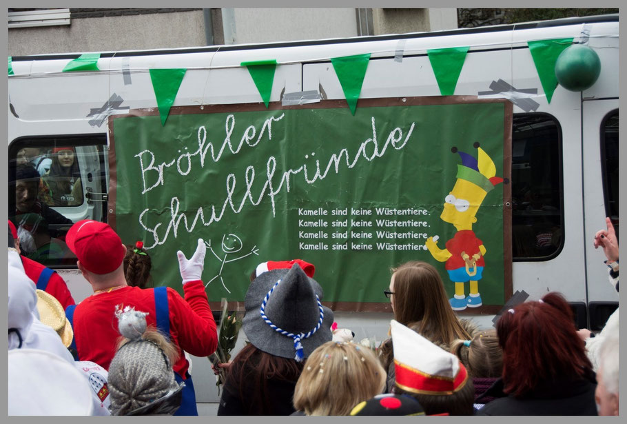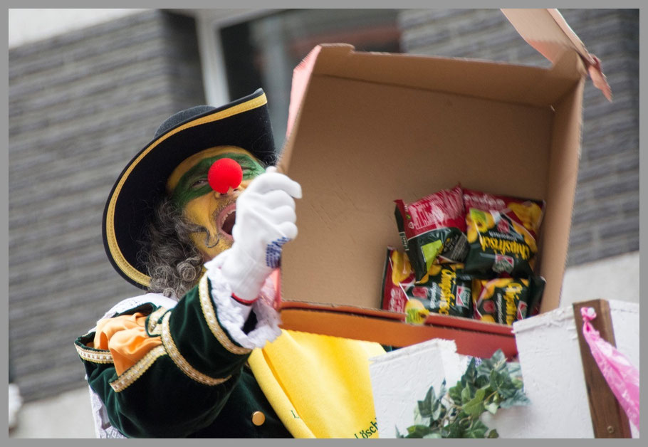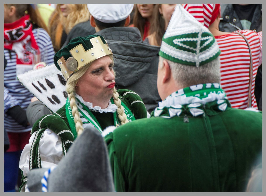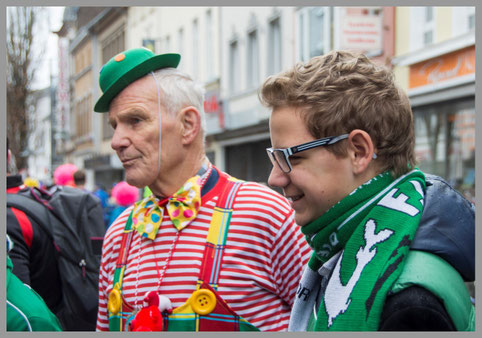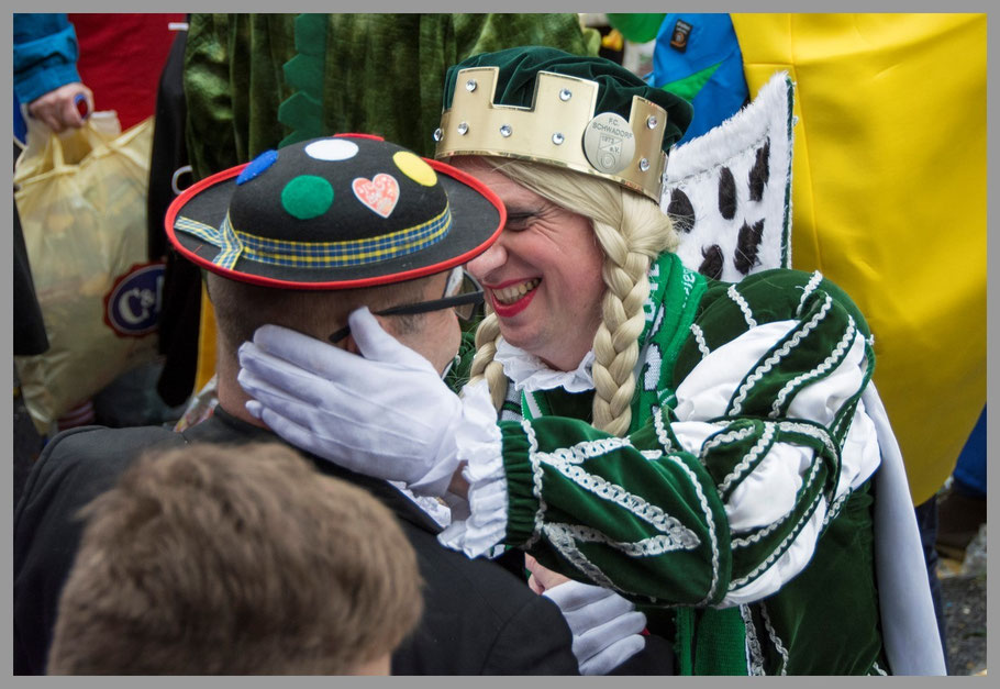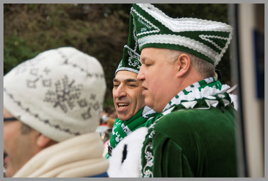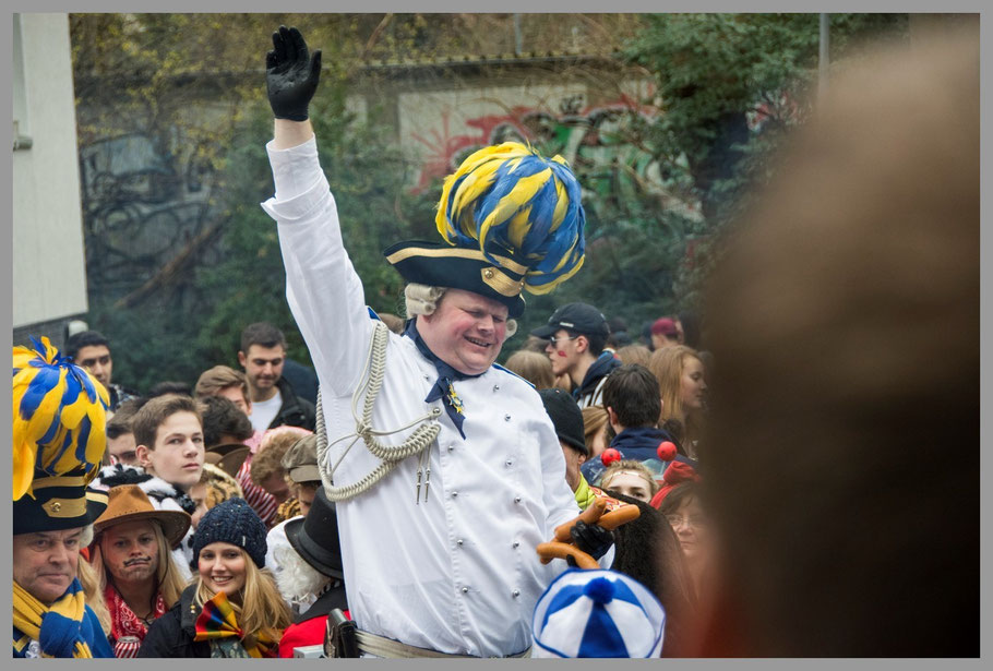 Die Kollegen aus dem Nachbarstadtteil Badorf um Prinz Tobi waren auch schon da, der Weg zum Partytruck in Brühl, von dem aus wir den Umzug anschauen sollten, wurde zusammen zurückgelegt. Also den Bauch vollgeschlagen und nix wie los. Die Kolonne war diesmal natürlich noch ein Stück länger als üblich. Cool! In Brühl angekommen, ging’s erstmal durch die Fußgängerzone Richtung Partytruck. Immer hinter unseren „Rockstars“ her. Anders konnte man die Jungs schon gar nicht mehr bezeichnen , so groß war streckenweise der Trubel.