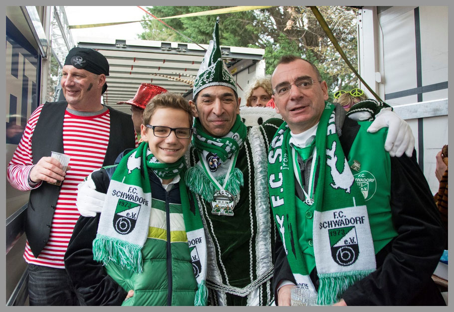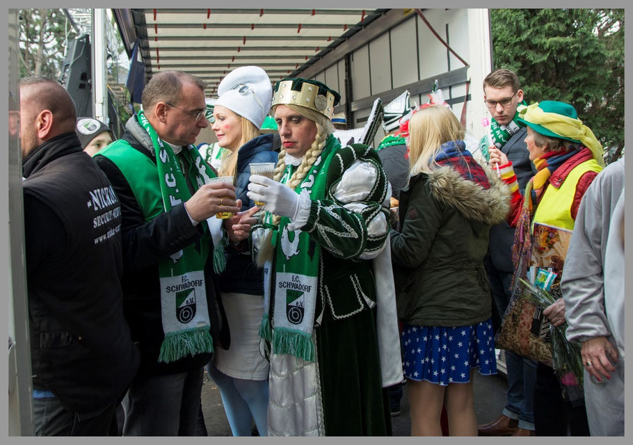 Logo, jeder kannte irgendjemanden, der im Zug mitlief und musste demnach da hin. Die sind alle fast ausgerastet. Nur noch getoppt von unserem Dreigestirn, die natürlich am gefragtesten waren und fast nur noch zwischen den Gruppen im Zug umhersausten.