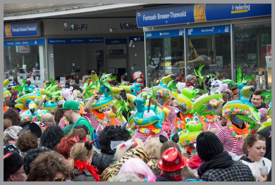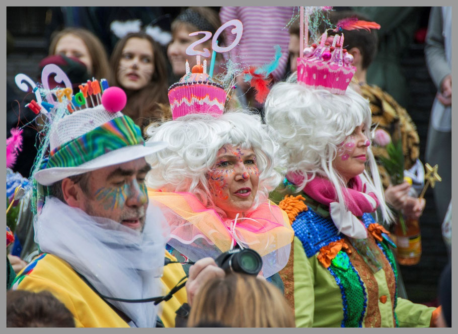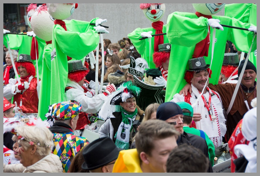 Und der Zug war wirklich irre. Waaaahnsinnig lang und so einfallsreich. Da waren echt tolle Gruppen mit irren Kostümen oder Wägen dabei. Keine Ahnung, wie lang der Umzug gedauert hat, aber mindestens 8 Kölsch... ;-)