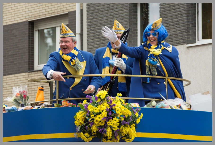 Am Ende kam dann natürlich der Wagen mit dem Brühler Dreigestirn und die haben unsere Jungs