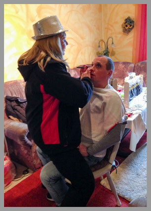 Als wir alle abmarschbereit waren, ging’s zur Hofburg, wie immer. Weil Silke, die arme Sau, wieder arbeiten musste, wurde Annett zusammen mit Alice wieder zur Maskenbildnerin der Jungfrau befördert. Dort angekommen, bot sich ein interessantes Bild: