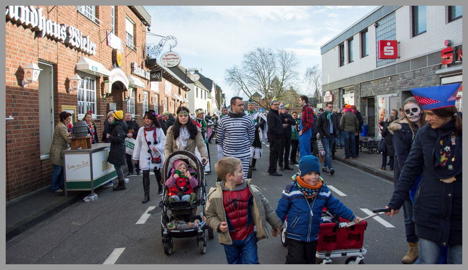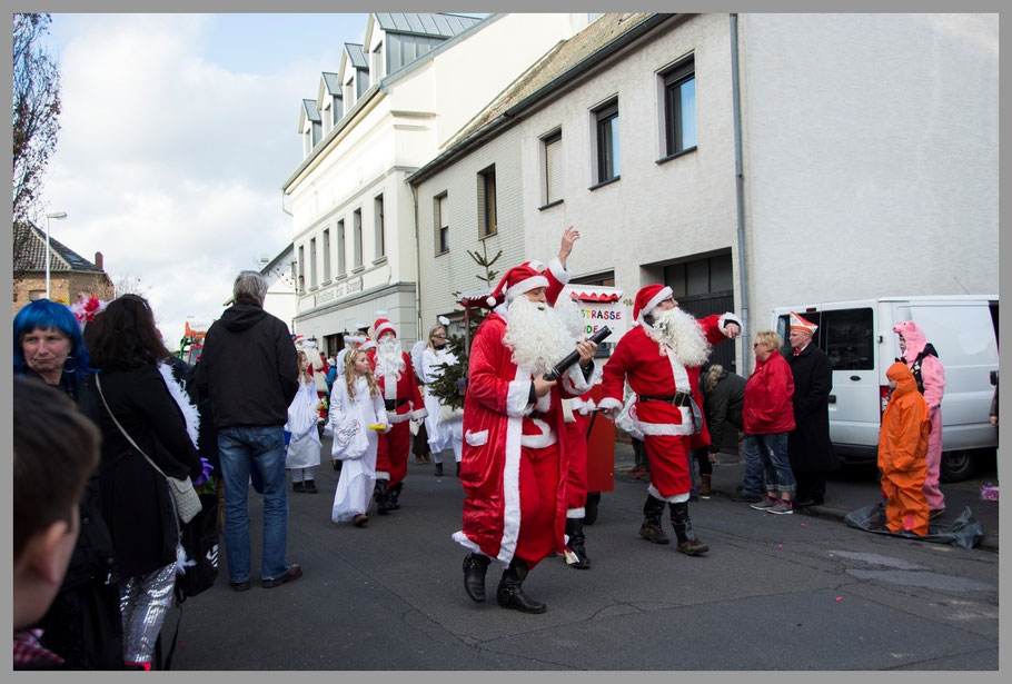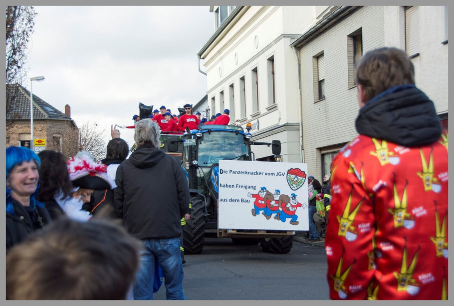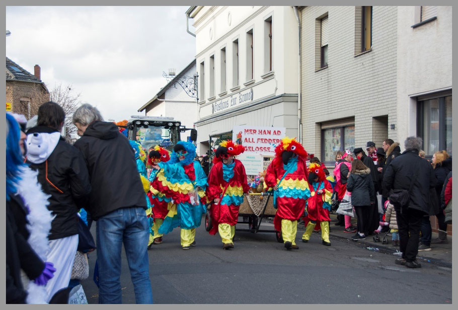 Der Zug war dann für das, was wir bisher erleben durften, eher kurz und durchschnittlich, aber ein paar Kamelle fielen dann doch für uns ab. Am witzigsten waren aber dann doch die Witze über die Kollegen aus Düsseldorf, die aus Angst vor ein bisserl Wind den Rosenmontagszug abgesagt hatten. Die knallharten Kölner natürlich nicht, „et hätt noch immer jot jejange“ und so war die Schadenfreude groß. ;-)