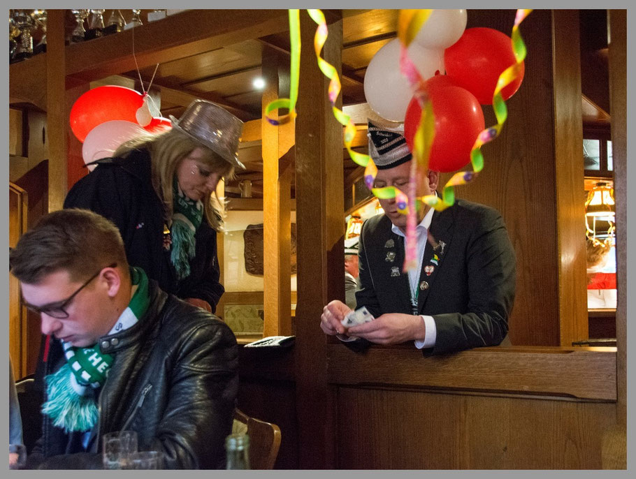 Wir saßen noch eine Zeit -oder ein paar Kölsch und Ramazotti- lang zusammen, bis es dann Zeit für uns zum Abschied wurde. Wir machten also die Runde bei den gar nicht so wenigen Leuten, die wir alle in der kurzen Zeit so lieb gewonnen hatten, um „Servus“ zu sagen und das war echt ein bisserl ergreifend. Sooo nette Leute, mannmannmann. Zur Krönung des Ganzen wurde vom Prinzen sogar noch ein „Kölle allaf“ auf uns ausgerufen und wir bekamen einen Klatsch-Ausmarsch. Wie cool.