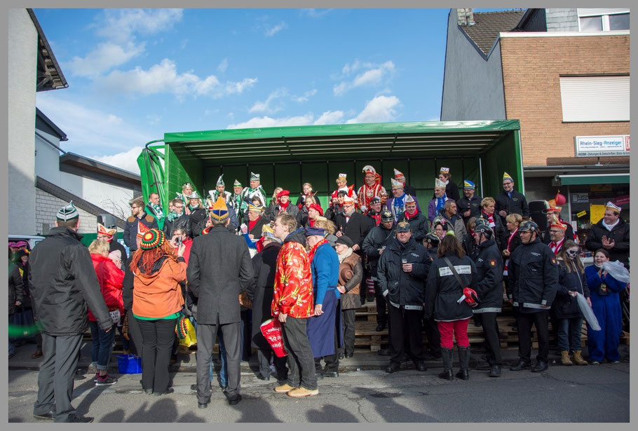 Wir hatten Top-Plätze auf einem aufgestellten Anhänger neben dem Dreigestirn.