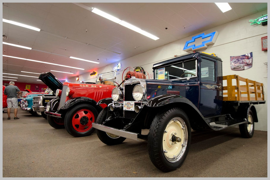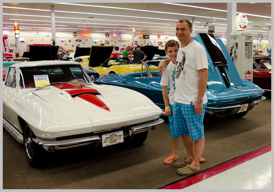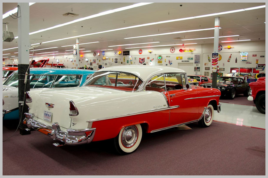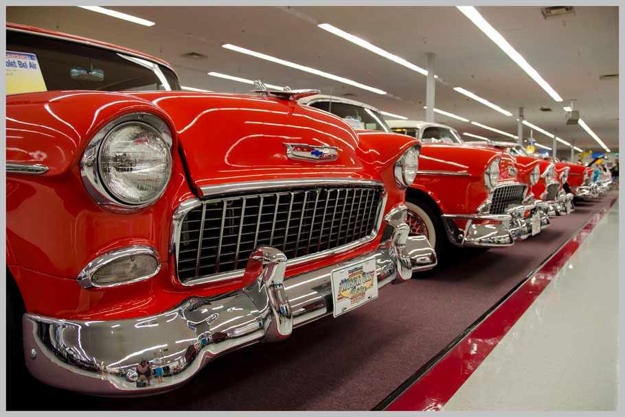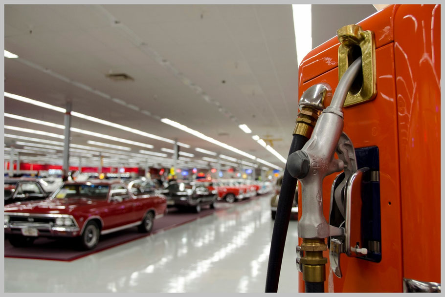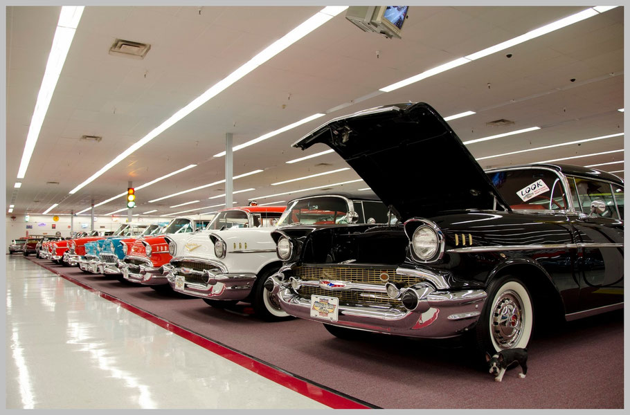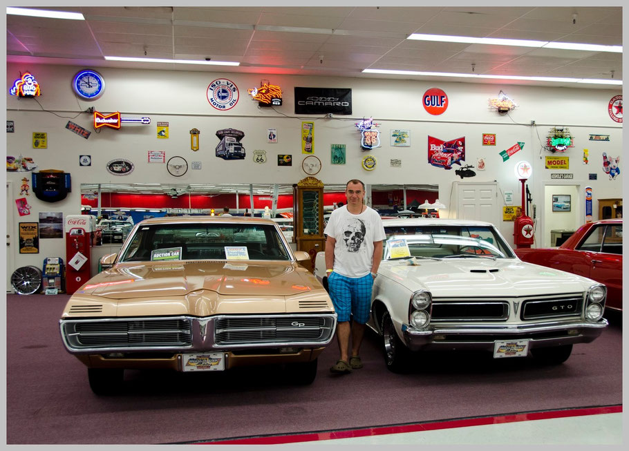 Aber was sich dort drin verbirgt, haut nicht nur Männer aus den Schuhen, aber vor allem Männer! Da stehen dicht an dicht aufgereiht alle nur denkbaren amerikanischen Autos jeder Generation, die zu ihrer Zeit eben einen Haufen Leistung hatten.