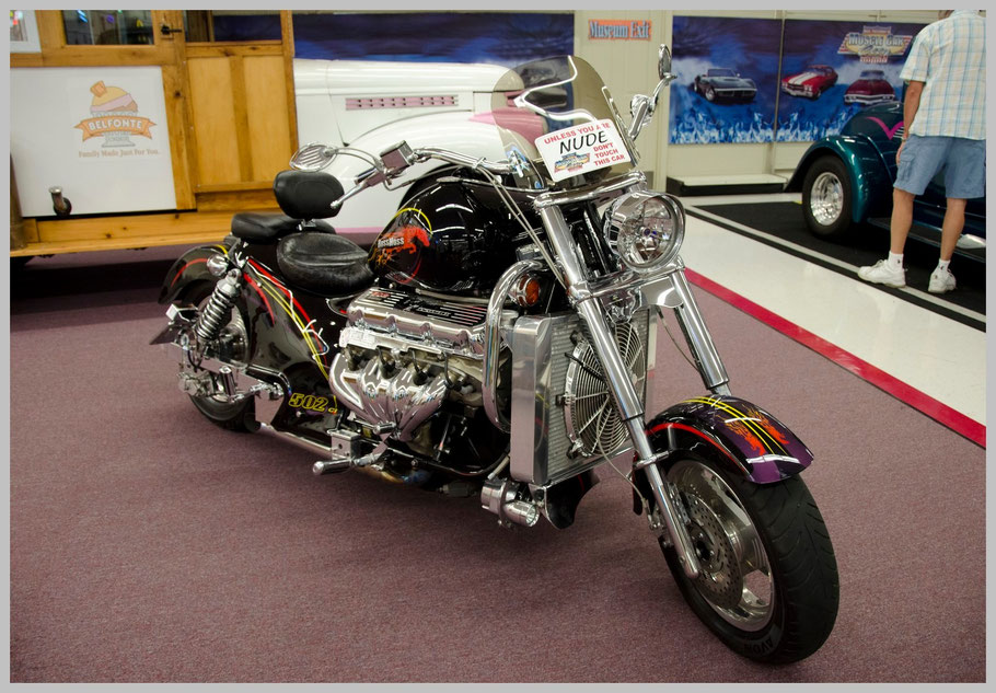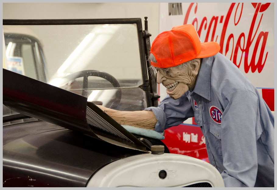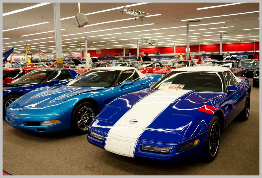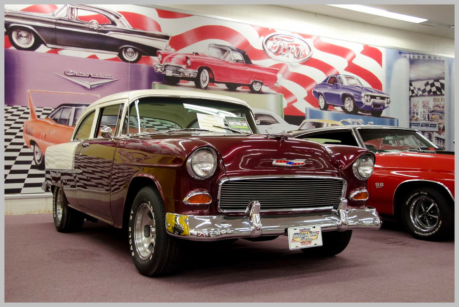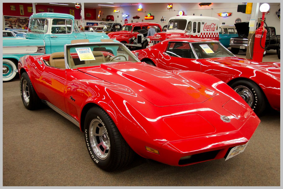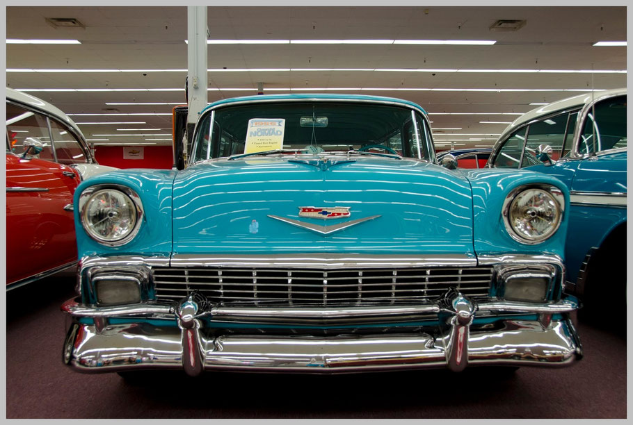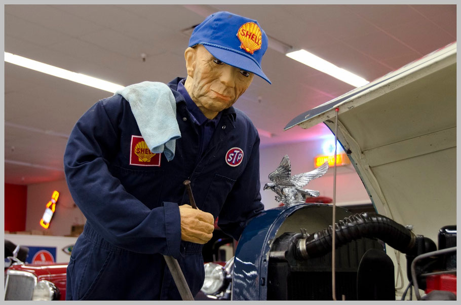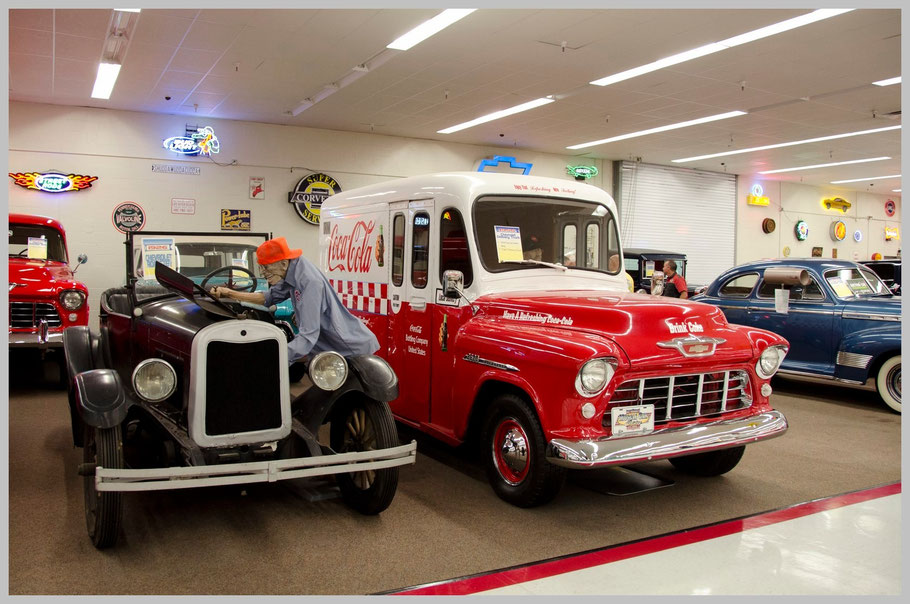 Aber was sich dort drin verbirgt, haut nicht nur Männer aus den Schuhen, aber vor allem Männer! Da stehen dicht an dicht aufgereiht alle nur denkbaren amerikanischen Autos jeder Generation, die zu ihrer Zeit eben einen Haufen Leistung hatten.