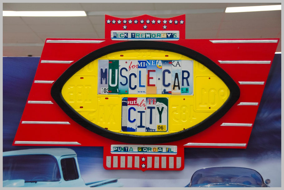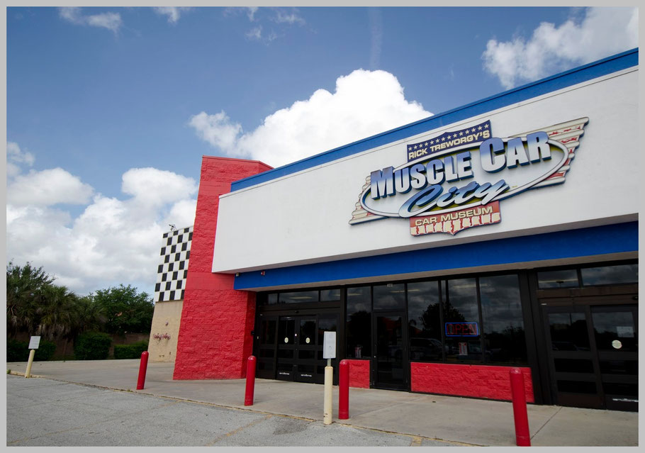 Heute war ein eher ruhiger Tag geplant. Nach dem Aufstehen, das sich etwas in die Länge zog, ging’s ein paar Kilometer die bereits bekannte „41er“, dem Tamiami-Trail, in Richtung Norden. Dort erwartete uns „Muscle Car City“. Das Ding ist eher unscheinbar gelegen, in einem ehemaligen Supermarkt, wahrscheinlich einem Wal-Mart (wegen des gigantischen Parkplatzes).